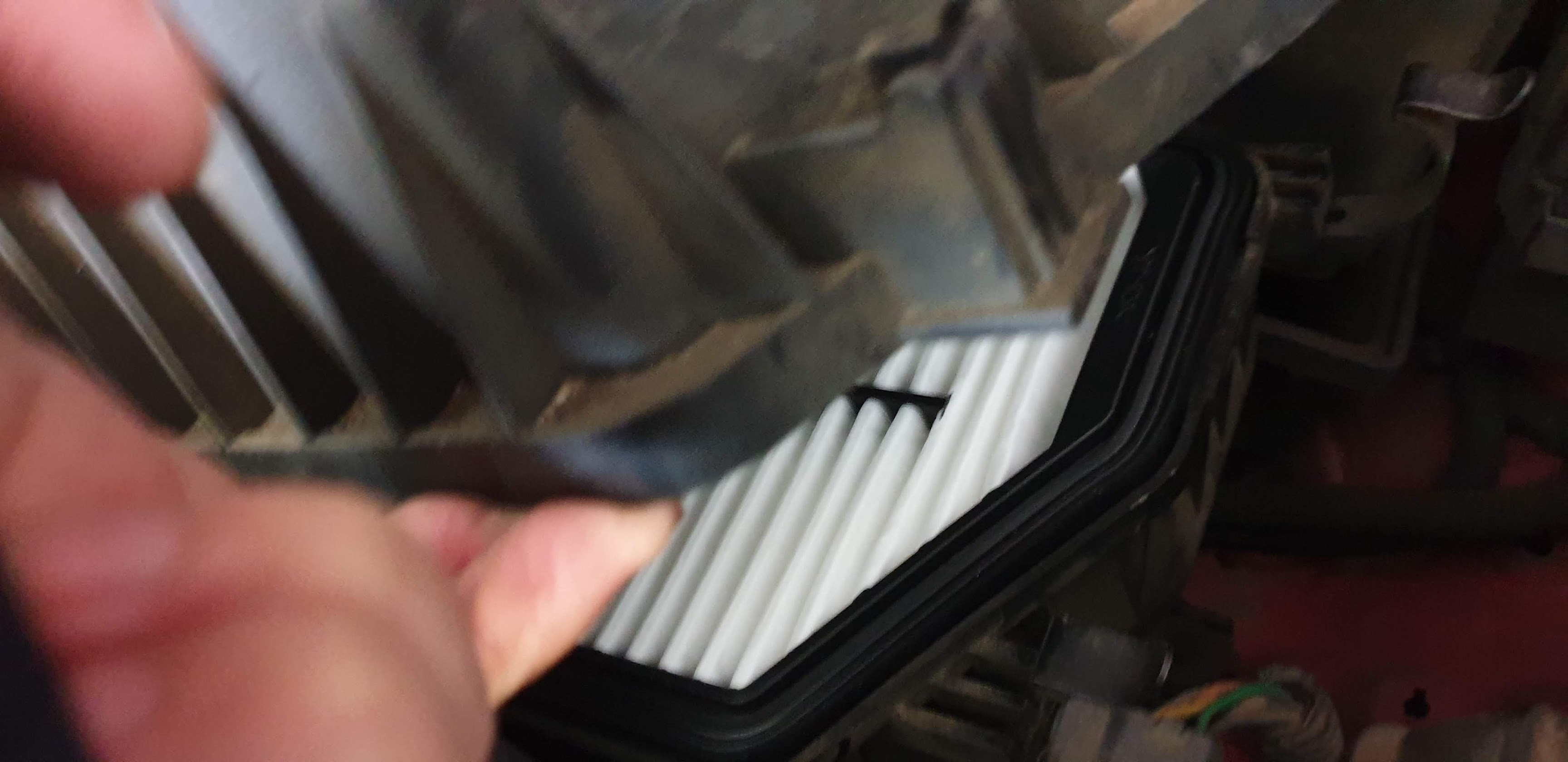 이제 새 에어필터를 하우징을 살짝 제끼고 예전 모습 그대로 넣어 주면 됩니다.